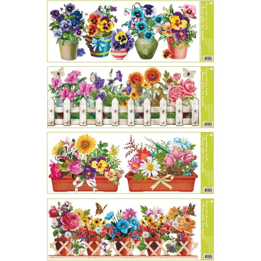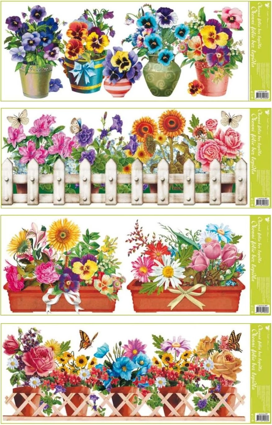 877 Dekorációs ablakmatrica – Virágok cserépben 55x22,5cm