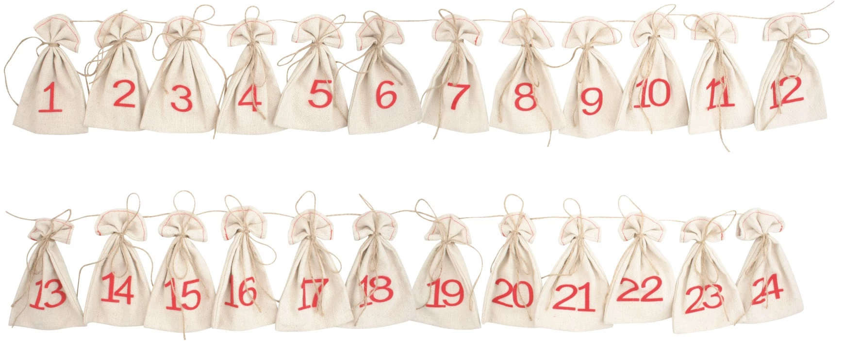 Tedd élvezetesebbé a Karácsonyra való várakozást adventi naptárunkkal. A számozott zacskókba teheted kedvenc cukorkáidat, csokoládéidat vagy apró játékaidat.
