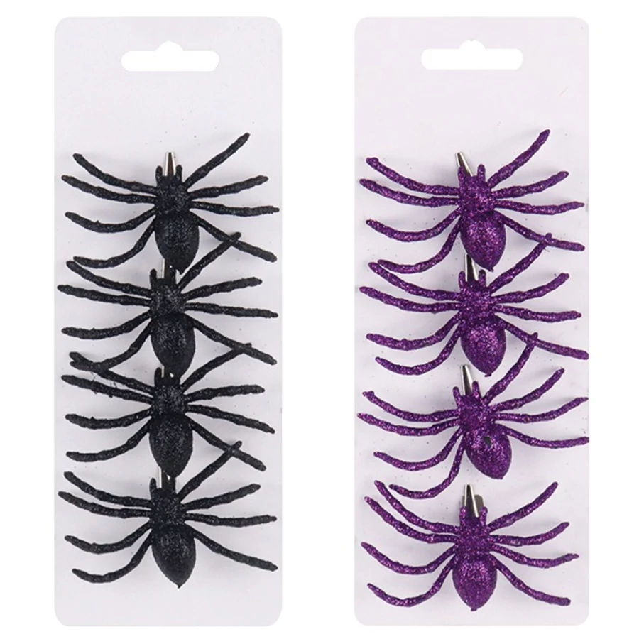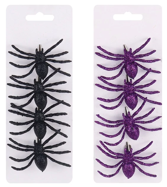 A csipeszen a csillogó pókok szokatlan és feltűnő hatást kölcsönöznek a dekorációnak. Könnyűek, fényesek, és könnyen rögzíthetők ágakra, díszekre, kompozíciókra és jelmezekre. Tökéletesen fognak kitűnni őszi vagy Halloweeni dekorációkban.