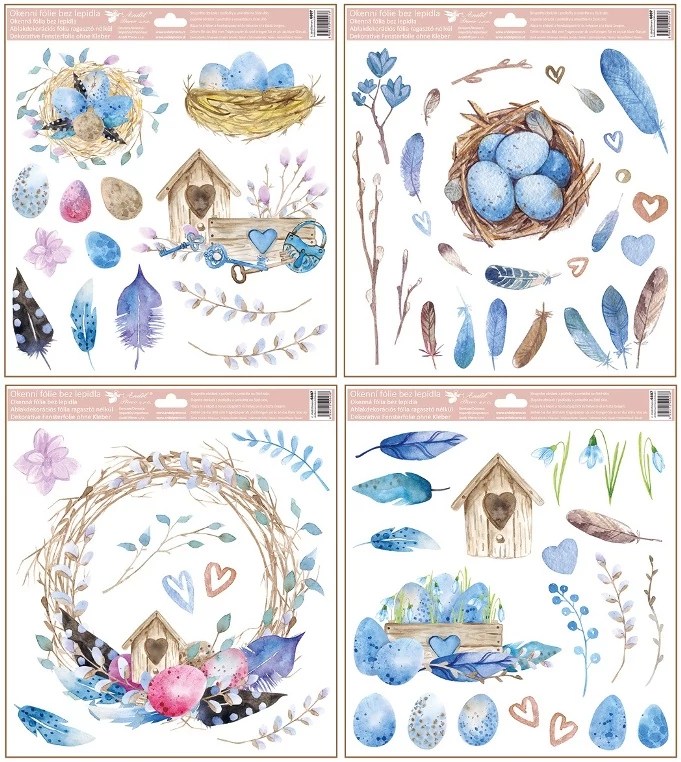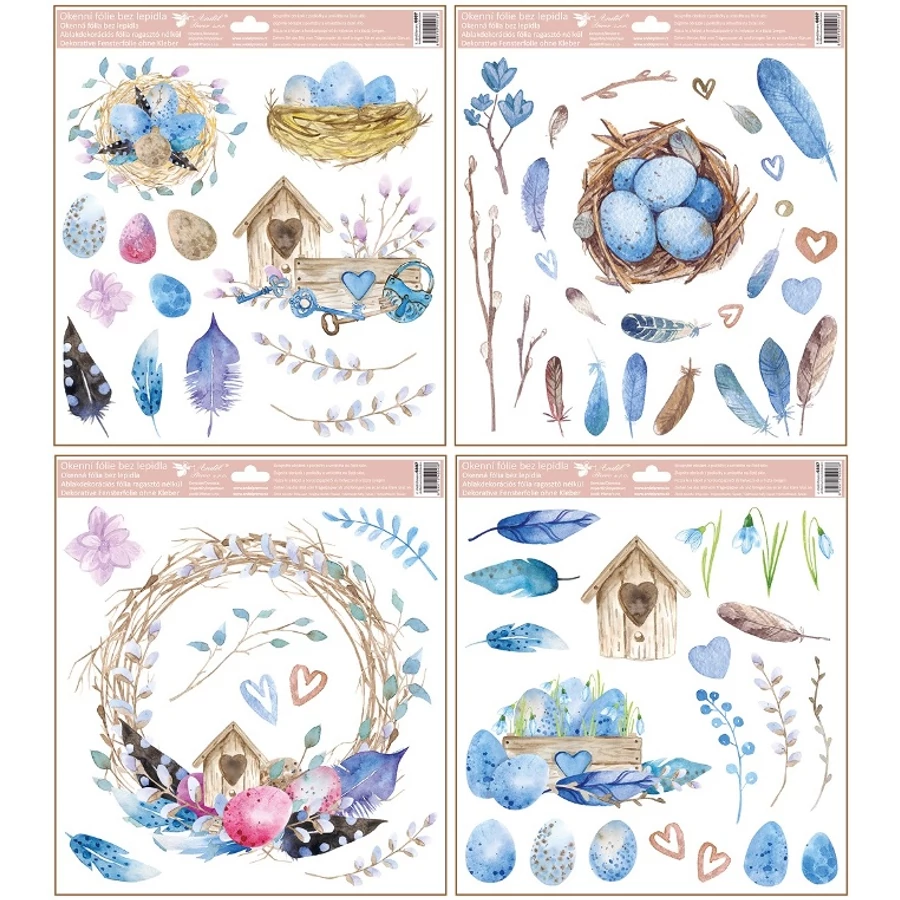 Ragasztómentes ablakmatrica 30x33,5cm – Madarak, tojások, tollak