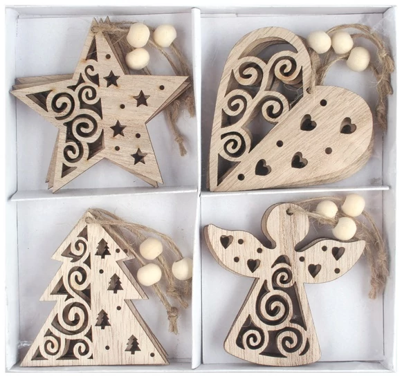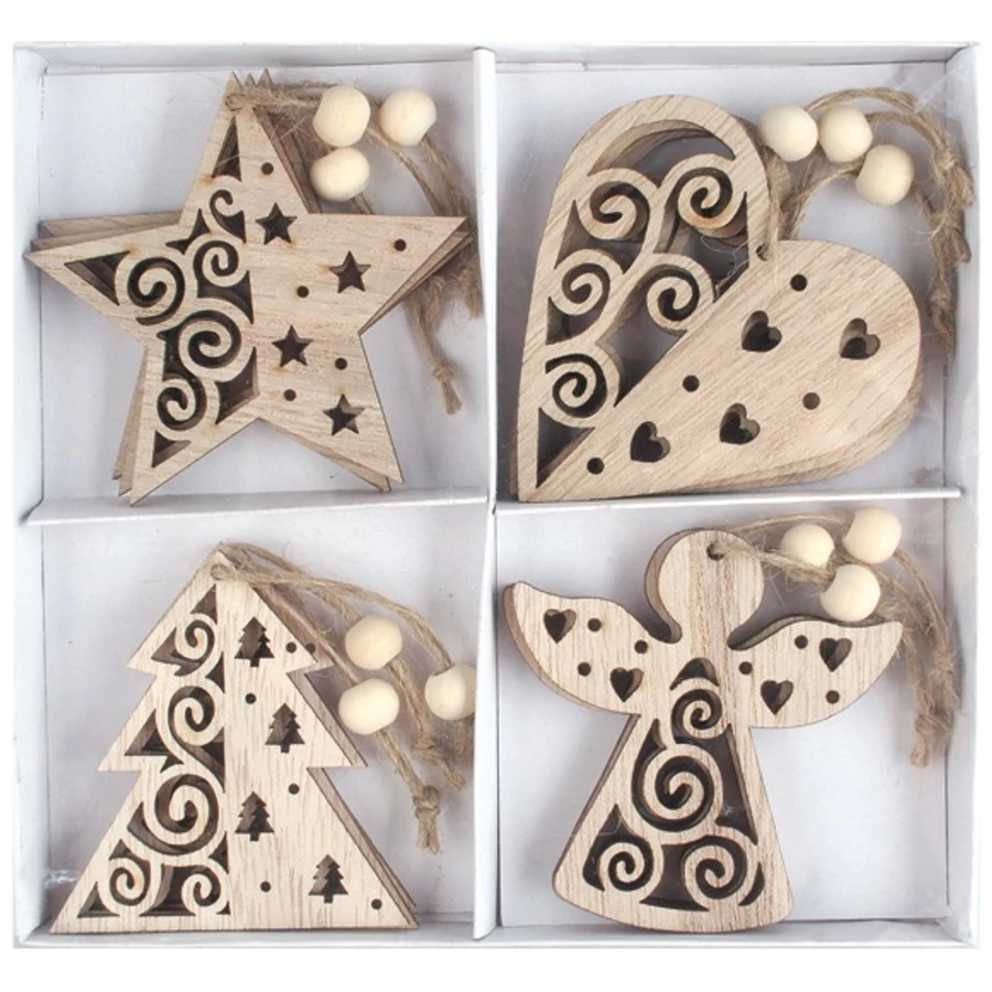 Felakasztható fa díszek 7x7x0,3cm/12db