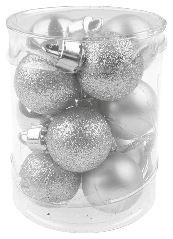 A doboz 12 db gömböt tartalmaz (4x fényes, 4x matt, 4x flitteres felületű).